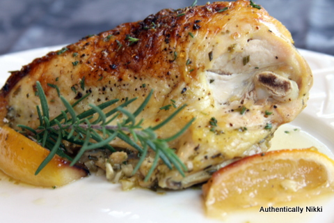 Chicken is a ubiquitous ingredient in our house, so this will be the first of many chicken entries on the blog. The original recipe is from the Barefoot Contessa’s newest cookbook and calls for fresh thyme. However, I did not have any on hand and really did not want to make a special trip to the store and spend $3 on a tiny package either. I do have a potted rosemary plant on the front porch so that is what I used. Besides, lemon and rosemary are one of those magical culinary combinations. The pan sauce is tangy and garlicky and would be perfect spooned over mashed potatoes. The sliced lemon that is cooked with the chicken will lend a slightly bitter flavor to the sauce. It looks really pretty, but if bitter is not your thing then leave it out. Next time I make this it will be without the sliced lemon. When we warmed up the leftovers the next day, the bitterness was much more pronounced and not very pleasant. Continue reading